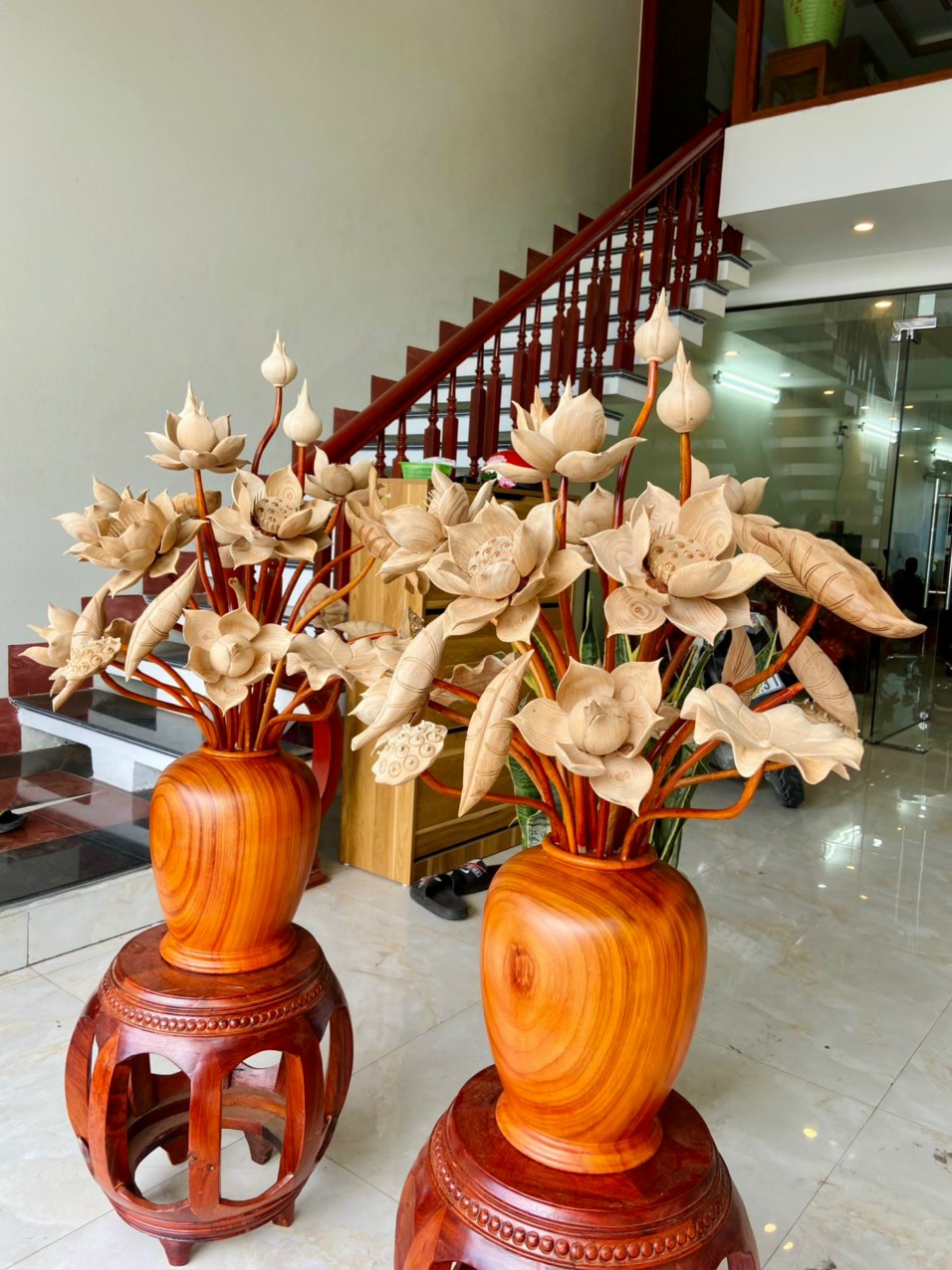 Bình hoa sen gỗ Ngọc am mùi cực thơm cao 1m2, wooden lotus