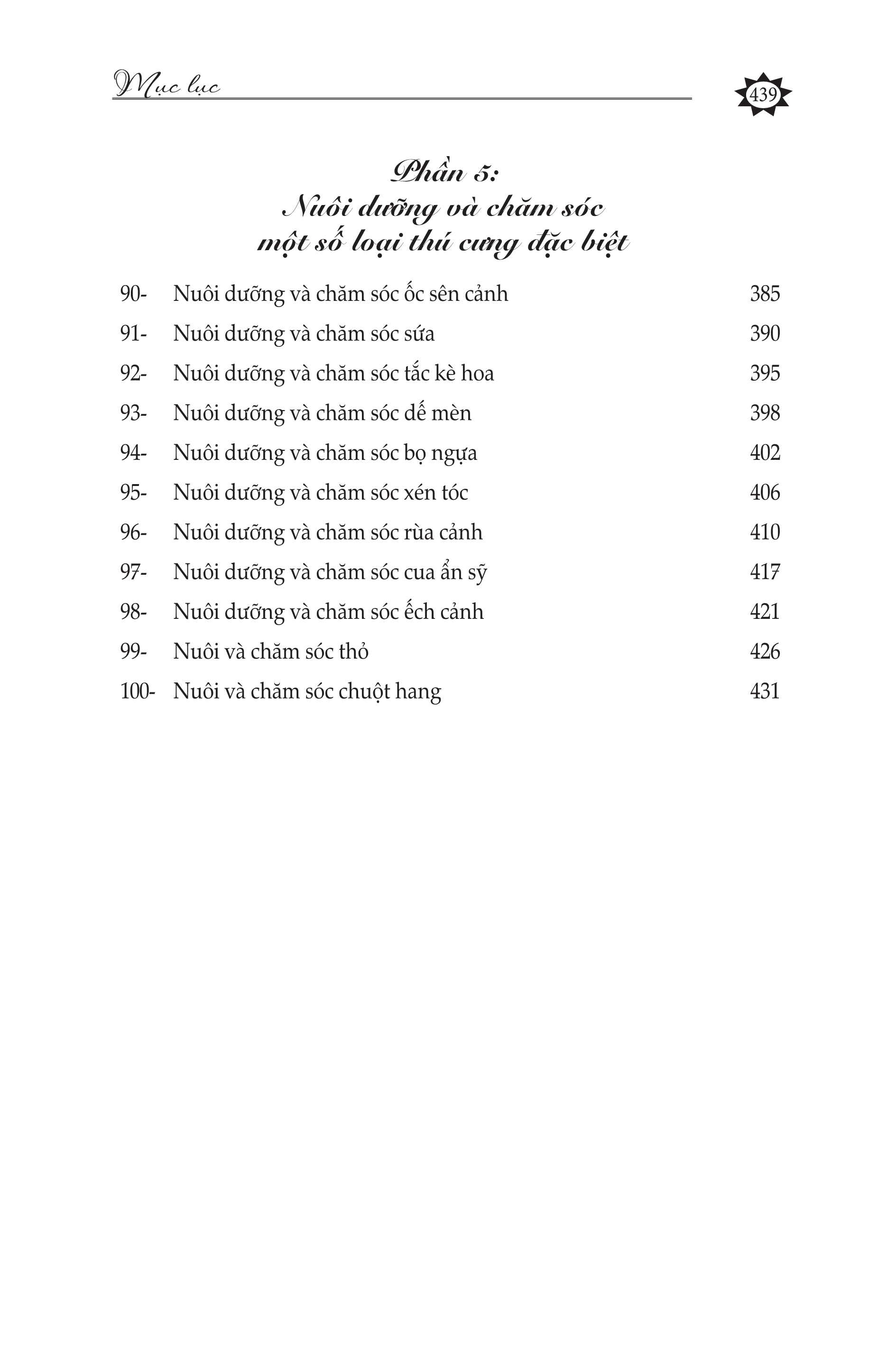 Nhưng việc nuôi thú cưng lại không hề đơn giản giống như nhiều người lầm tưởng, mà cần phải có phương pháp nuôi dưỡng, chăm sóc hợp lý và khoa học. Nếu không, bạn rất khó nuôi sống được thú cưng, ngược lại, còn làm ô nhiễm môi trường sống, thậm chí còn gây ra một số bệnh truyền nhiễm và một số phiền toái trong cuộc sống. Chính vì thế, chúng tôi đã biên soạn cuốn sách “100 mẹo nuôi dưỡng và chăm sóc thú cưng”, với mục đích giúp mọi người nuôi dưỡng và chăm sóc tốt thú cưng, để từ đó có được niềm vui từ việc nuôi thú cưng.