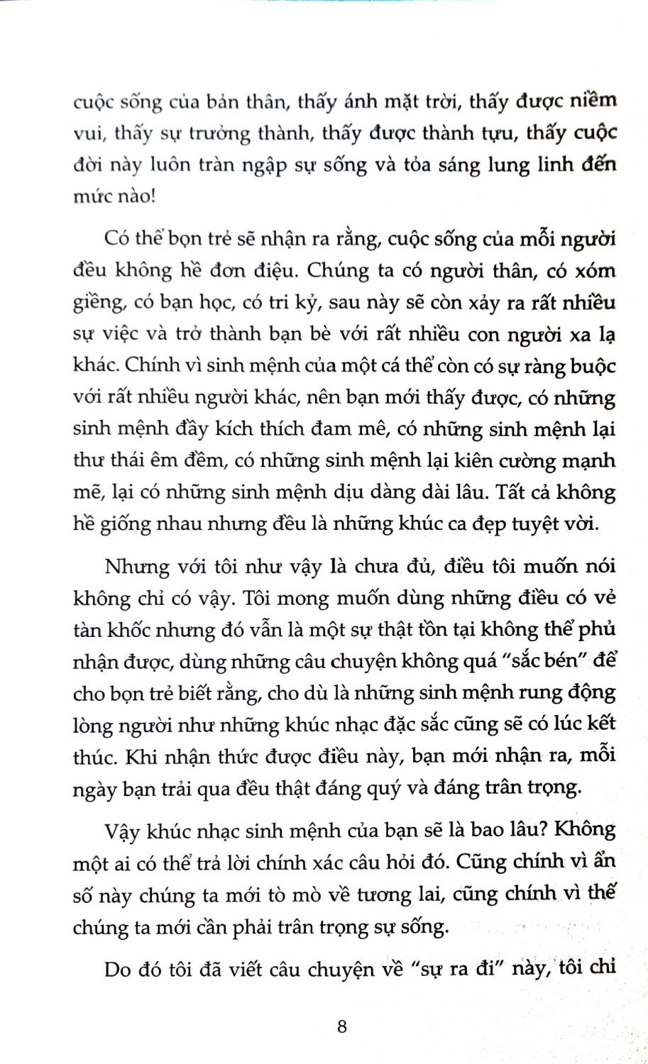 Hãy bảo vệ và yêu quý ngọn đèn sinh mệnh của bạn, đừng coi thường bản thân mình. Xin hãy tin rằng thế giới này dù không tệ hơn vì không có bạn, nhưng nhất định sẽ tốt đẹp hơn vì có bạn.