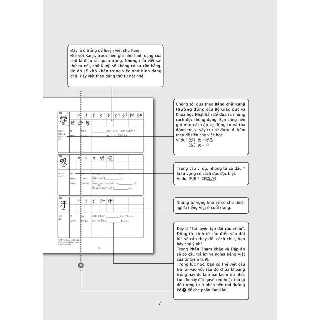 Sách có những phần dịch tiếng Việt cho các ví dụ sử dụng chữ Kanji và các từ vựng khó, bạn có thể hiểu được nghĩa của từ ngay lập tức mà không cần đến từ điển.