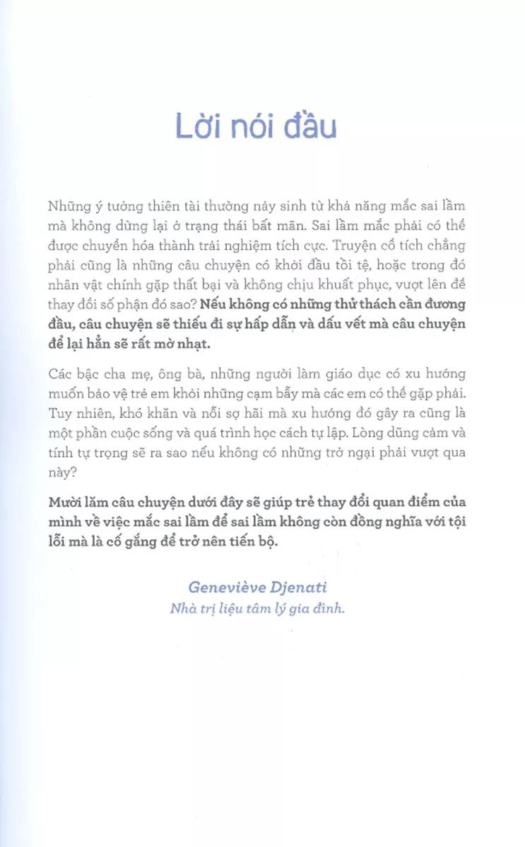 Luc rất háo hức vì mai cậu sẽ được cùng bố mẹ đi cắm trại và lần đầu tiên ngủ đêm trong lều, nhưng sáng hôm sau trời lại đổ mưa tầm tã; Léo nhất định không chịu ngủ trưa ở lớp vì cậu để quên thú bông ở nhà; Pia muốn mẹ không phải vất vả gỡ tóc cho mình mỗi sáng nữa nên đã tự cầm kéo cắt nham nhở và cụt lủn mái tóc dài… Cuốn sách này tập hợp 15 câu chuyện – 15 tình huống quen thuộc mà vẫn dở khóc dở cười cùng những giải pháp nhẹ nhàng, sáng tạo và rất dễ áp dụng giúp các bé hiểu ra rằng gặp phải điều không mong muốn là một trong những cách tốt nhất giúp ta học hỏi.