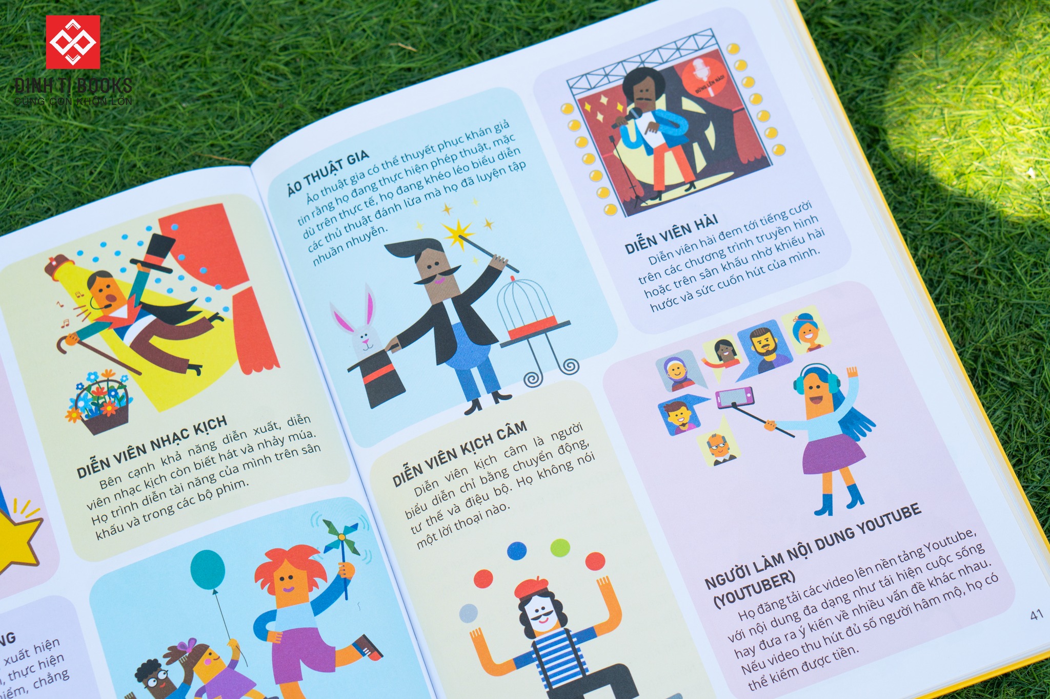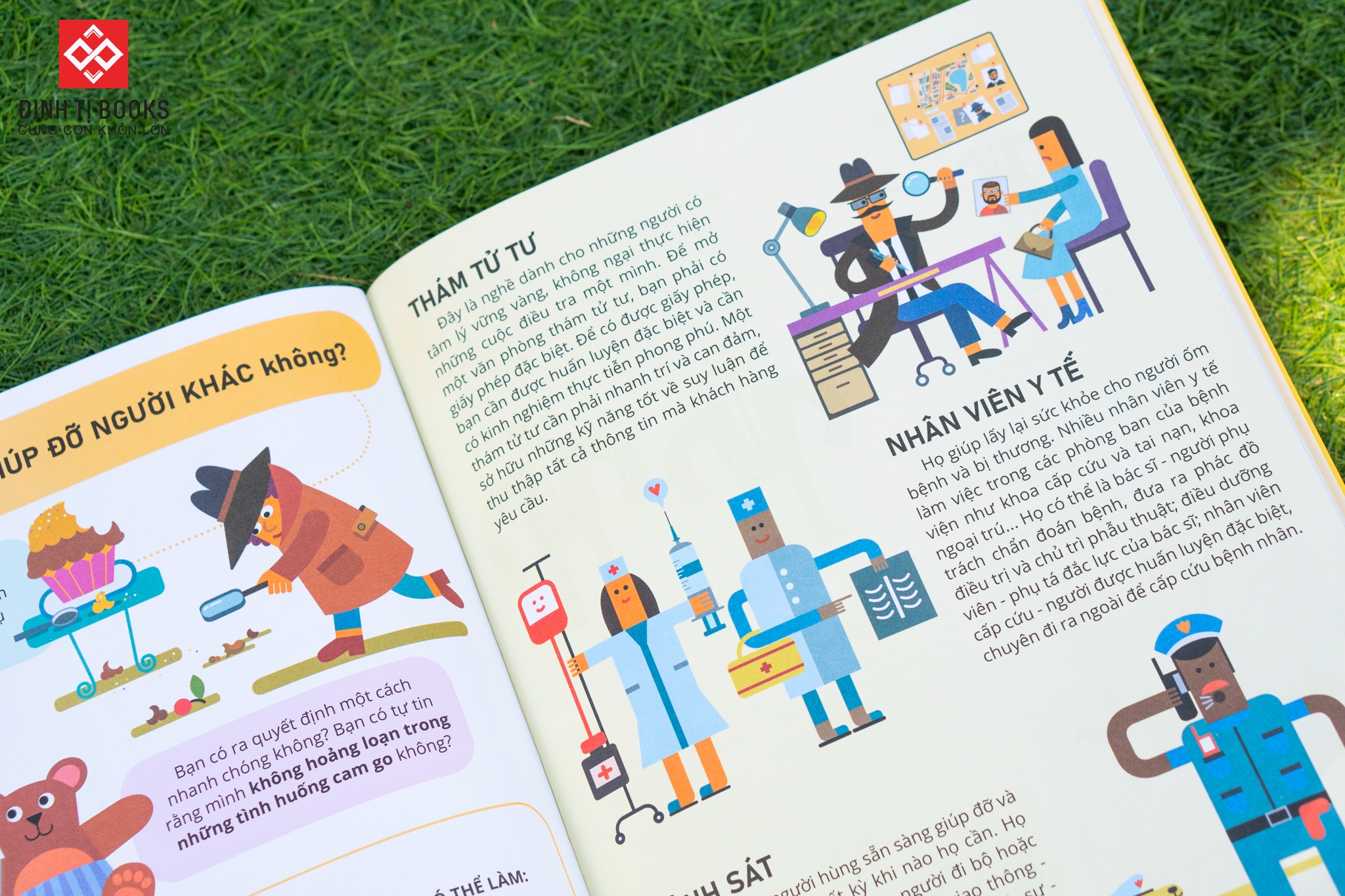 Cuốn sách này sẽ cung cấp những gợi ý về công việc phù hợp dựa trên sở thích và mong muốn của bản thân. Đồng thời đưa ra những mô tả tương đối chi tiết về công việc đó như bạn sẽ làm gì, cần kỹ năng gì để làm nó… Các bạn nhỏ sẽ rất dễ để hình dung và có nền tảng cơ bản về nghề nghiệp đó.