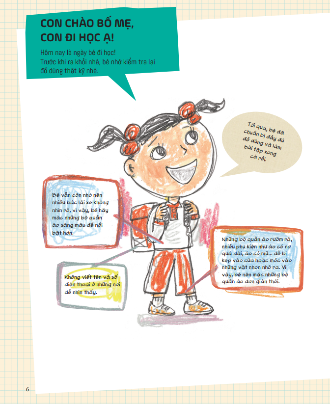 “HỨA VỚI MẸ, BÉ HÃY AN TOÀN KHI ĐI HỌC” giới thiệu các quy tắc cần thực hiện để bé giữ an toàn cho bản thân khi đi học. Trường học là nơi an toàn, nhưng khi chơi đùa, tham gia các hoạt động thể chất hoặc di chuyển trên đường, bé sẽ có thể gặp các tình huống ngoài ý muốn.