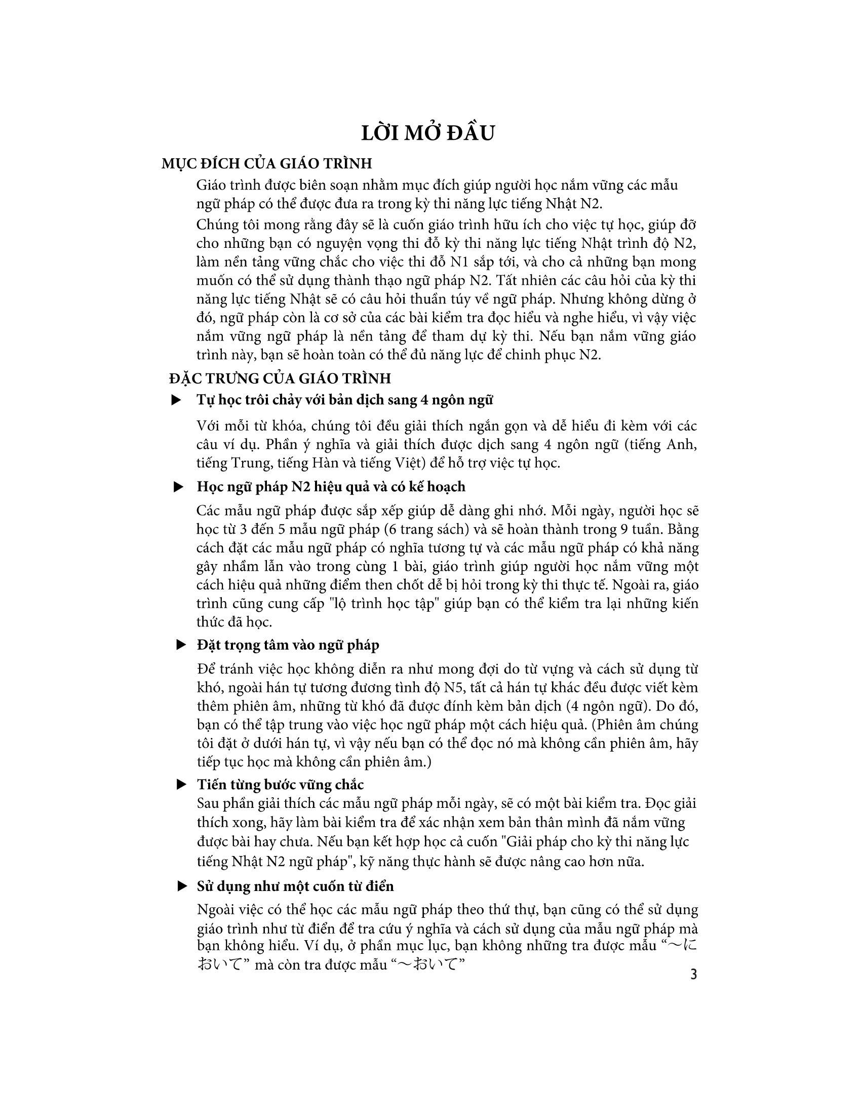 Chúng tôi đã hạn chế không sử dụng mẫu ngữ pháp khó, để tránh tình trạng người học nản vì câu ví dụ dùng ngữ pháp và chữ Hán quá khó; Với chữ Hán, ngoài chữ Hán thuộc trình độ N5 hay trình độ tương đương (trình độ cấp 4 cũ) đều được viết kèm thêm phiên âm bên dưới.