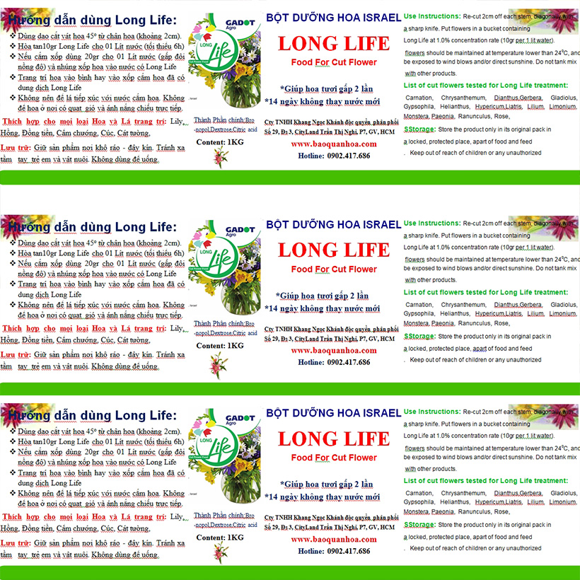 BÍ QUYẾT SHOP HOA GIỮ HOA TƯƠI LÂU VÀ KHÔNG THAY HOA ĐỊNH KỲ BẰNG BỘT DƯỠNG HOA LONGLIFFE SG CỦA ISRAEL (COMBO 3 HỘP 1KG TIẾT KIỆM CHI PHÍ) - MÔ TẢ SẢN PHẨM