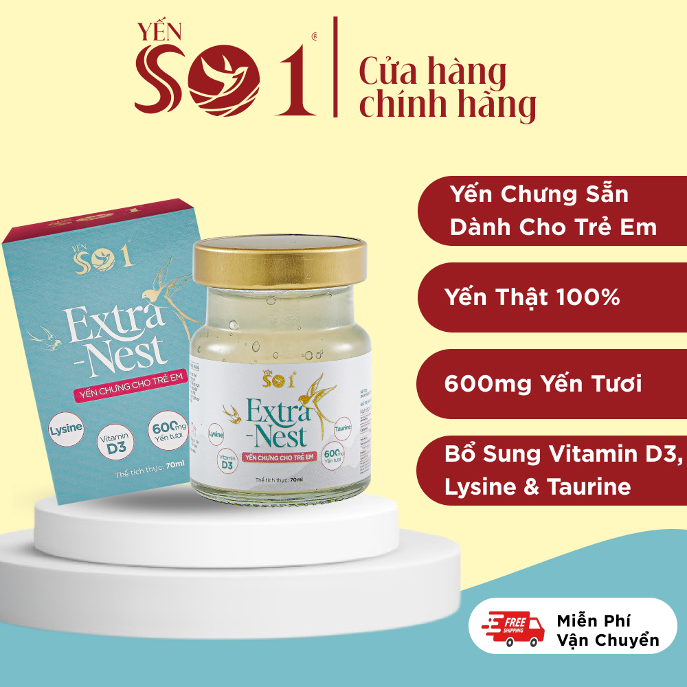 Mua tại Tiktok[Yến Số 1 Hũ 70ml] Yến chưng sẳn dành cho trẻ em, Yến tươi 600mg yến thật, bổ sung vitamin D3. CON KÉN ĂN KHÔNG NẠP ĐỦ CHẤT DẪN ĐẾN CƠ THỂ ỐM YẾU. LÀM THẾ NÀO ĐỂ GIÚP CON BỔ SUNG DINH DƯỠNG MỖI NGÀY? Khi con bạn không muốn ăn hoặc chỉ ăn rất ít. Mỗi bữa ăn trở thành một cuộc chiến đầy căng thẳng, khiến bạn cảm thấy lo lắng và bất lực. Hình ảnh của con nhỏ bé, ốm yếu không có đủ năng lượng để tham gia vào các hoạt động vui chơi và học tập, thực sự làm bạn buồn phiền, không biết phải làm thế nào để cải thiện tình hình. Ăn Yến sào là một trong những phương pháp có từ ngàn xưa giúp bổ sung dinh dưỡng nhanh nhất, an toàn và đã được công nhận là cực kỳ hiệu quả đối với thể trạng yếu ớt. Ngoài ra, Yến sào được các nhà khoa học chứng minh có chứa Acid Sialic - thành phần tự nhiên có trong sữa mẹ, giúp tăng cường hệ miễn dịch và phát triển não bộ cho trẻ. ️ Yến Số 1 tự hào về sự ưu ái của thiên nhiên khi Việt Nam là một trong những nơi phù hợp nhất để nuôi Yến trên Thế Giới. Chúng mình có những trại nuôi Yến chất lượng và có nguồn gốc rõ ràng. Từ quy trình chế biến đến ra thành phẩm, Yến Số 1 tuân thủ nghiêm ngặt quy trình vệ sinh an toàn thực phẩm, đảm bảo sản phẩm luôn đạt chất lượng cao nhất cho mỗi hũ Yến. Ngoài ra, Yến Số 1 hiểu rằng trẻ em đang ở độ tuổi phát triển do đó mỗi hũ Yến chưng sẵn đều được bổ sung D3, Lysine, và Taurine - những thành phần quan trọng trong việc phát triển sức khỏe của trẻ nhỏ. Với hũ Yến chưng sẵn này, bạn không cần phải lo lắng về việc chưng yến và có nhiều thời gian chăm lo cho bản thân và gia đình. MUA NGAY YẾN SỐ 1 CHO BÉ DÙNG NHÉ! THÔNG TIN SẢN PHẨM: Thương hiệu: Yến Số 1. Xuất xứ: Việt Nam. Quy cách đóng gói: Đóng trong hũ thủy tinh tiệt trùng hút chân không dung tích 70ml, lớp ngoài là hộp giấy cứng. Ngày sản xuất: Xem trên bao bì sản phẩm. Hạn sử dụng: 24 tháng kể từ ngày sản xuất. HƯỚNG DẪN SỬ DỤNG: Trẻ em trên 1 tuổi: 2 ngày 1 hũ. Trẻ em từ 3 tuổi trở lên: 1 ngày 1 hũ. KHÔNG SỬ DỤNG cho trẻ dưới 1 tuổi. HƯỚNG DẪN BẢO QUẢN Bảo quản nơi khô thoáng, tránh ánh nắng mặt trời hoặc ngăn mát tủ lạnh. Ngon hơn khi dùng lạnh. CAM KẾT VÀ CHÍNH SÁCH CỦA YẾN SỐ 1 Tuyệt đối an toàn cho sức khỏe của trẻ nhỏ. Không pha trộn tạp chất, mủ trôm. Không chất bảo quản có hại. Không dùng đường, muối để vệ sinh tổ Yến. Không sử dụng các chất tẩy trắng, làm màu. Đổi trả trong vòng 7 ngày và bảo hành 1 đổi 1 nếu có lỗi do nhà sản xuất.