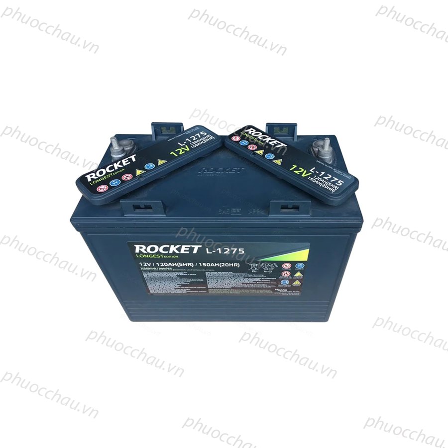 Ắc Quy Rocket L-1275 được sản xuất bởi Global Battery (Hàn Quốc) chuyên dùng cho xe điện, xe golf, xe chà sàn, xe thang công trình