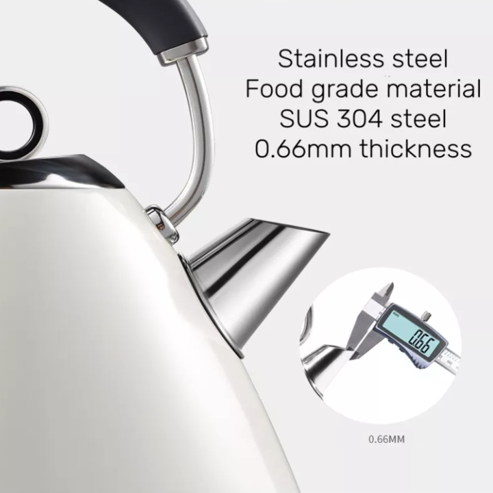 Thiết kế màu sắc bắt mắt tô điểm thêm không gian bếp. Thân ấm siêu tốc làm bằng thép không gỉ cao cấp, sáng bóng, không xỉn màu. Tay cầm được bọc lớp nhựa chịu