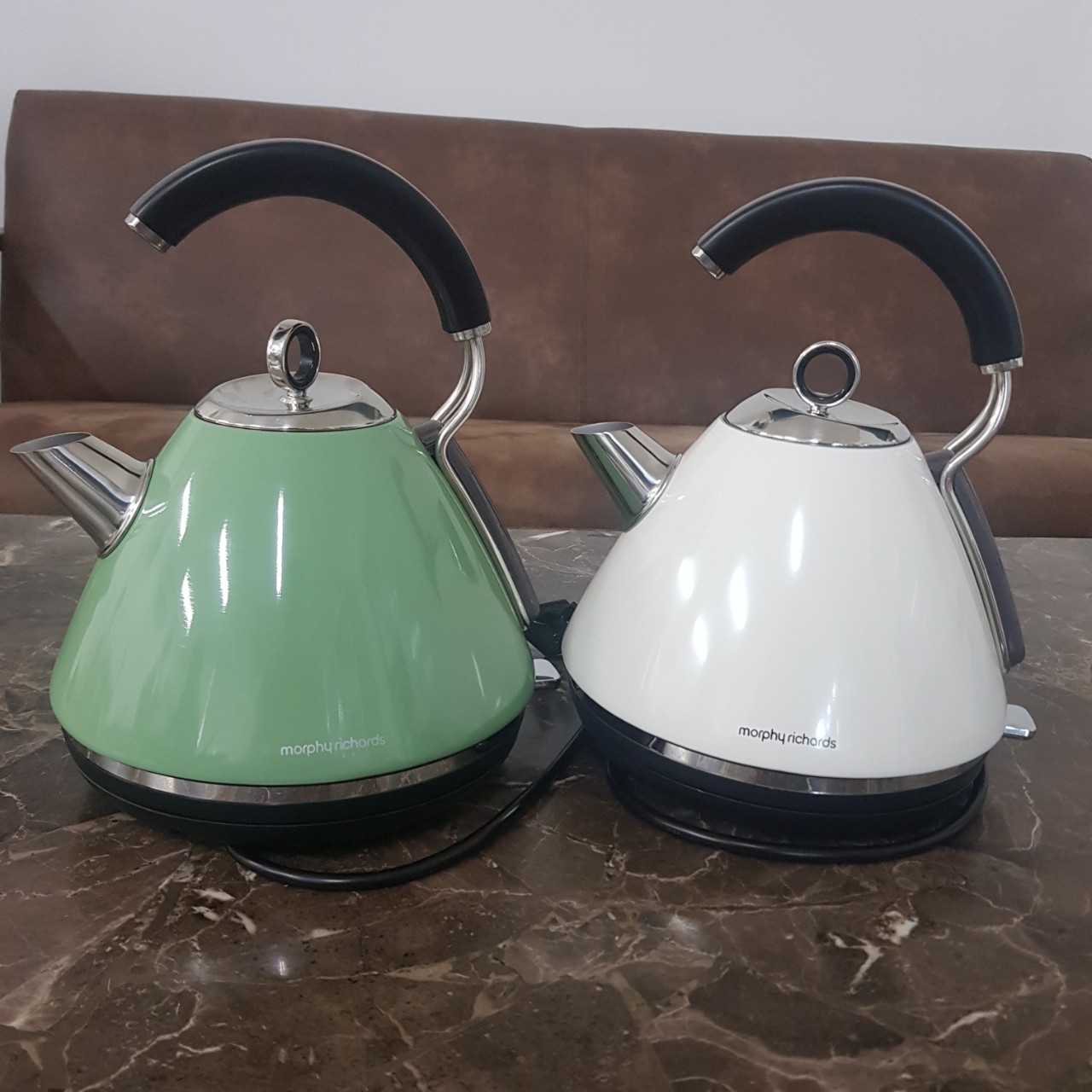 - Ấm đun nước siêu tốc cao cấp Morphy Richards MR7456A dung tích 1.5L là 1 trong những dòng ấm đun cao cấp nhất trên thị trường, ấm có kiểu dáng thiết kế hiện đại với 2 màu sắc màu xanh lá sang trọng và màu trắng trang nhã. Ấm siêu tốc Morphy Richards MR7456A không chỉ trang bị hệ thống đun nước siêu tốc với công suất lên tới 1850W giúp đun sôi nước cực nhanh, mà còn có hệ thống bảo vệ an toàn chống quá nhiệt giúp bạn yên tâm sử dụng, tuyệt đối an toàn kể cả khi vô tình bật công tắc đun mà không có nước bên trong. Thiết kế hiện đại, đep mắt với dung tích 1.5 lít