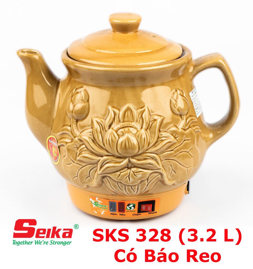 Ấm Sắc Thuốc Seika 3.2L - SKS328 (Gốm Sứ Bát Tràng) được làm từ gốm được nung ở nhiệt độ 1300 độ hoàn toàn khử hết chì trong đất. Men phủ ấm hoàn toàn là men tự nhiên, nguồn gốc sứ hoàn toàn được làm từ làng gốm Bát Tràng nổi tiếng của Việt Nam, ấm không nứt bể khi nấu với nhiệt độ cao, không biến dạng hay mất màu theo thời gian.