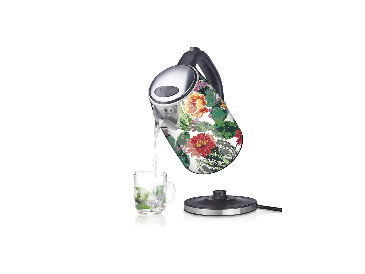 Thiết kế màu sắc bắt mắt tô điểm thêm không gian bếp. Thân ấm siêu tốc làm bằng thép không gỉ cao cấp, sáng bóng, không xỉn màu. Tay cầm được bọc lớp nhựa chịu