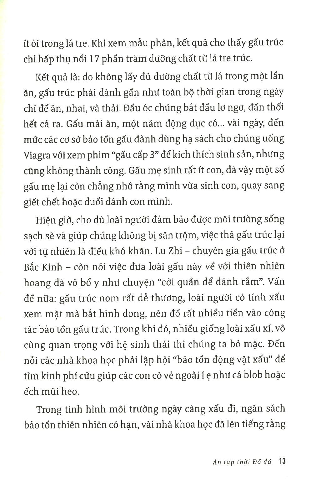 Cuốn sách là câu chuyện thú vị và bổ ích về thực dưỡng, ăn chay, thực phẩm hữu cơ nhìn từ góc độ khoa học và thực tiễn đời sống, môi trường, được thể hiện bằng giọng văn hài hước và sắc sảo. Tác giả Pha Lê có bằng thượng cấp Grand Diploma của trường ẩm thực Le Cordon Bleu danh giá. Cô hiện đang là cây viết ẩm thực - văn hóa chủ lực của trang và báo Tuổi Trẻ cuối tuần.