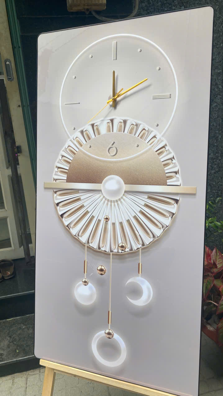 Tranh đồng hồ treo tường tráng gương cách điệu họa tiết sang trọng 6 - Kích thước của tranh : Kích thước : 35x70cm 45x90cm 55x110cm 60x120cm - Chất liệu : Mặt mica sáng bóng