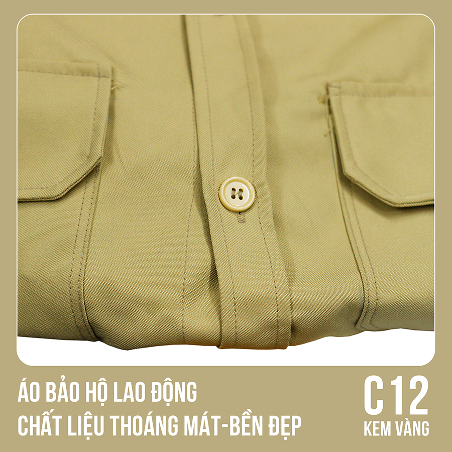 ✨Áo bảo hộ lao động, chất liệu thoáng mát, bền đẹp - Mã C12 (Kem Vàng)