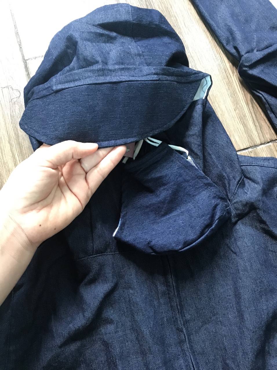 - Lớp trong là vải kẻ caro cotton thấm hút tốt. Lớp ngoài là vải jean mềm dày dặn, thời trang, dài phủ kín chân