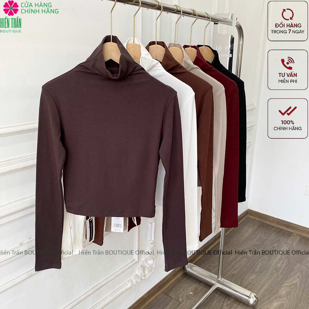 ✨Áo croptop dài tay nữ Hiền Trần BOUTIQUE cổ lọ chất vải cotton co giãn giữ nhiệt tốt kiểu ôm body cá tính Women A5