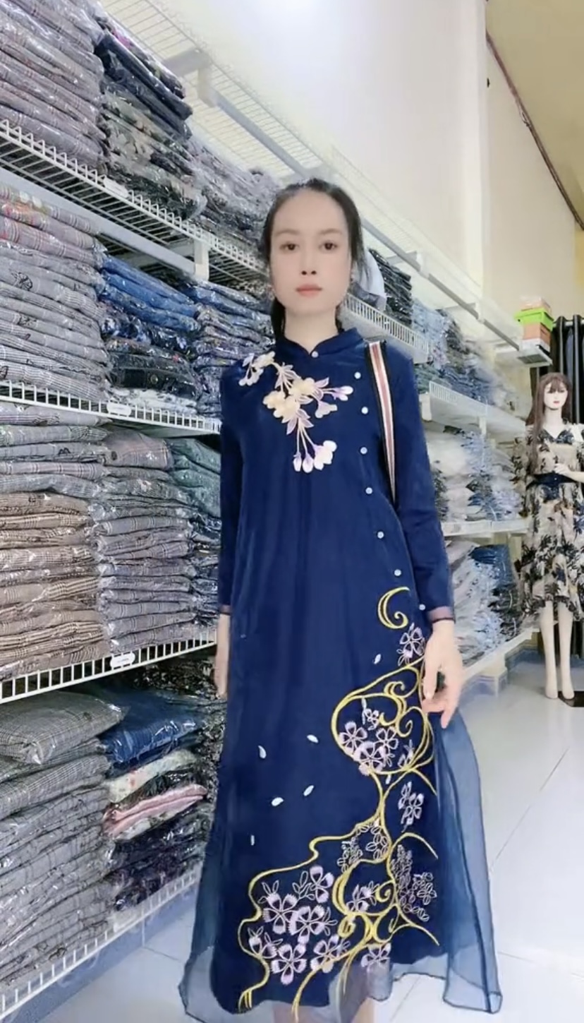 Mua tại TiktokĐầm form dáng áo dài cách tân Mã: DLBG001 Màu: Dark blue Chất liệu: Polyester, spandex Số đo V1/V2/V3(cm): Gợi ý phối đồ: Có thể diện như đầm hoặc mix với quần lụa mặc như áo dài.