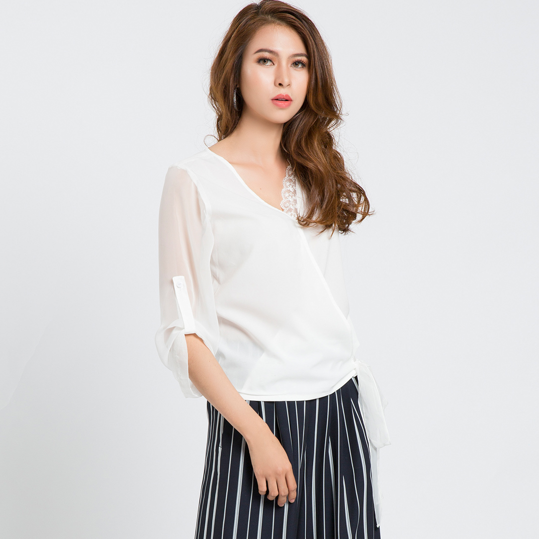 - là người phụ nữ trẻ trung, luôn đẹp, luôn tươi, luôn cuốn hút với những bộ cánh thời trang thịnh hành; Chiếc áo sơmi cách điệu nhấn nhá những chi tiết voan ren tinh tế này sẽ giúp nàng tỏa sáng phong cách nơi công sở lẫn những buổi hẹn sau giờ làm.
