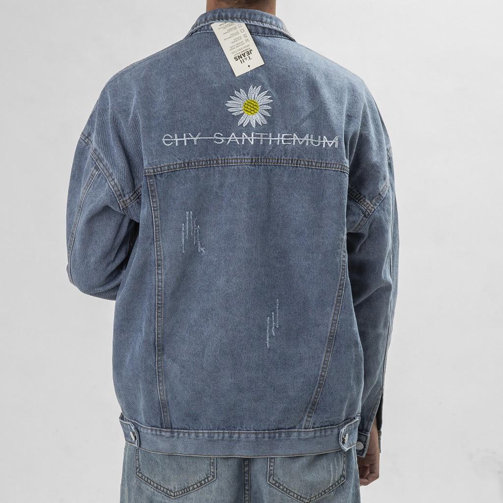 ✨Áo jean nam thêu hình bông cúc, áo khoác thời trang năng động cá tính