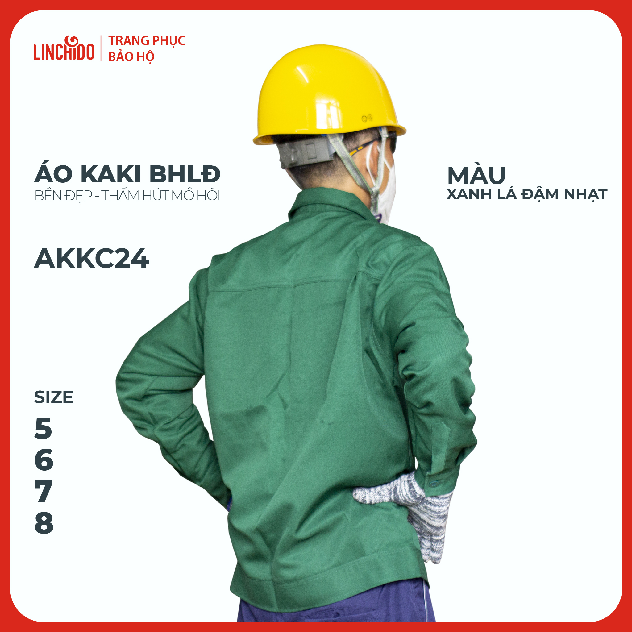 Chất liệu: Vải kaki, không bị xù lông. Tính năng: Bảo vệ cơ thể người mặc trước các yếu tố môi trường tại nơi làm việc. Khả năng vệ sinh: Vải được làm