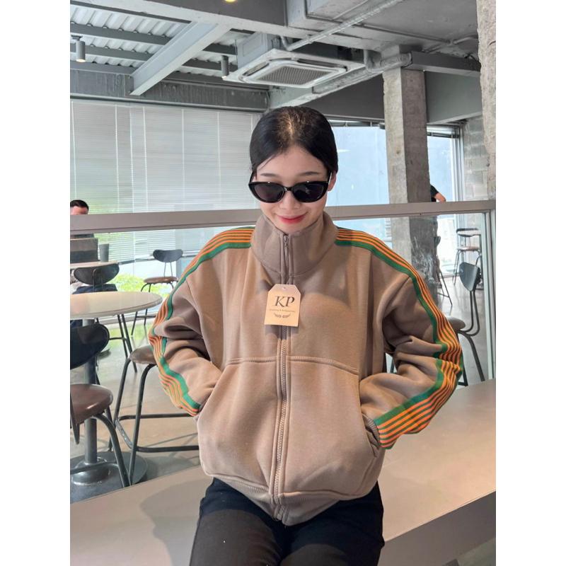Áo khoác nữ nỉ chống nắng Viền Sọc Cổ Trụ Dáng Lửng là một lựa chọn thời trang cực hót cho các cô gái. Thiết kế cổ trụ và viền sọc tinh tế, sản phẩm