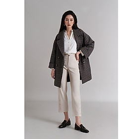 Áo khoác măng tô dáng dài họa tiết kẻ nâu phong cách Hàn Quốc thanh lịch, trẻ trung - BD23S501