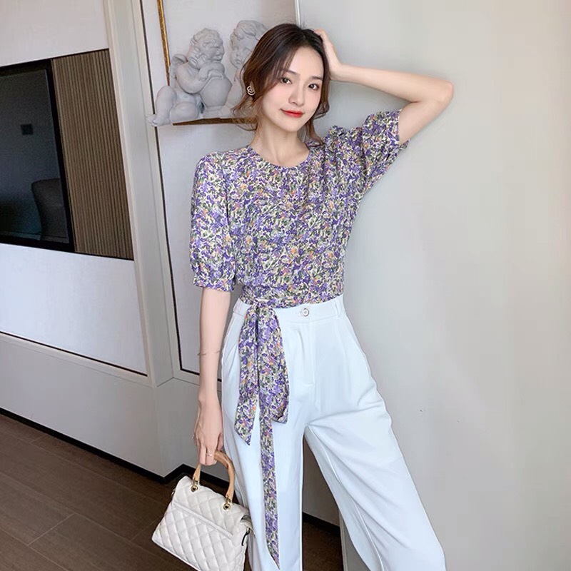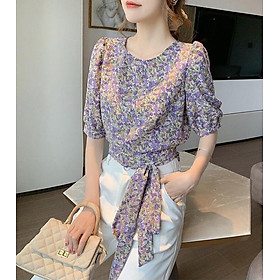 ✨Áo kiểu họa tiết hoa nhí sang trọng, 2 màu thích hợp mặc công sở hoặc dạo phố