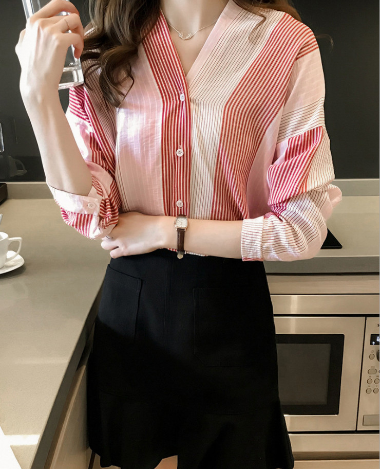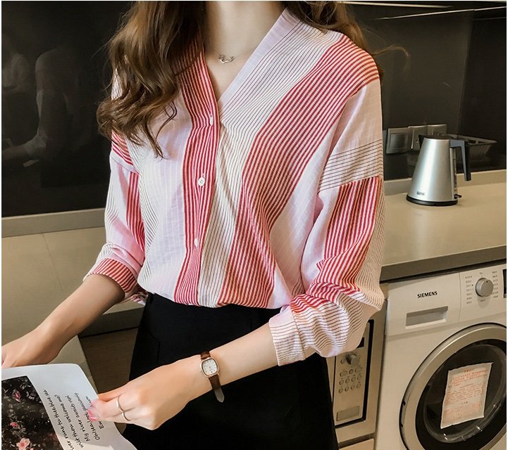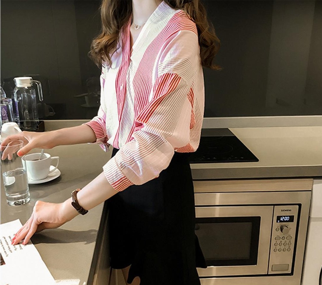 ✨Áo kiểu nữ, áo đũi nữ tay lỡ cổ V phối màu nhẹ nhàng Ale12