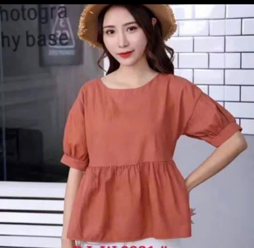 - Áo kiểu nữ đẹp với dáng áo babydoll được thiết kế không quá dài, cổ áo là cổ tròn, tay áo nhún tạo kiểu, thoải mái khi vận động.