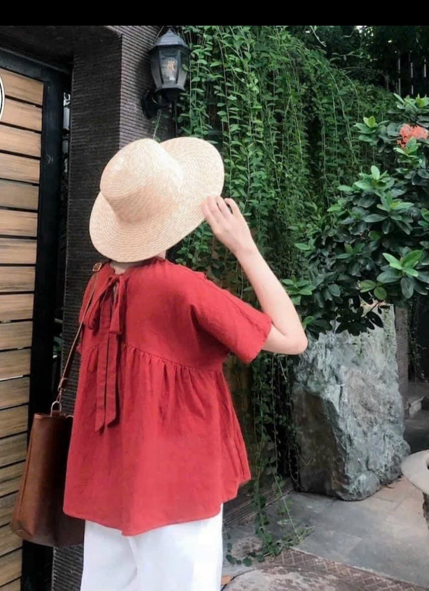 Áo babydoll linen kiểu xinh tay phồng tiểu thư công chu