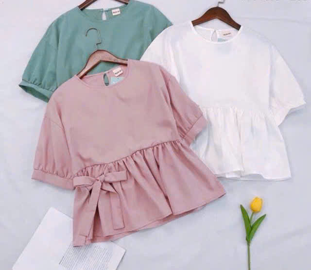 - Áo kiểu nữ Hàn Quốc thiết kế kiểu dáng không quá rộng, che được bụng, mặc lên trông rất xinh xắn.