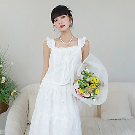--------------- CHI TIẾT SẢN PHẨM ✿ Sản phẩm : Áo 2 dây babydoll trắng thêu hoa cúc dễ thương Rumin Miều Est.2013 ✿ Chất liệu : Kate Hoa ✿ Màu sắc : TRẮNG / KEM