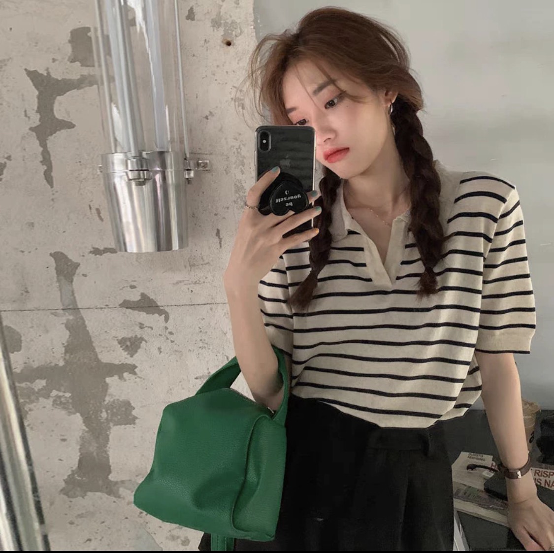 Áo Len Mongtoghi Kẻ Nhỏ Tay Ngắn Phối Khăn Muối Tiêu mang phong cách trẻ trung, dễ phối cùng nhiều loại trang phục. Thông tin sản phẩm: Chất liệu: Len dệt mềm, thoáng,