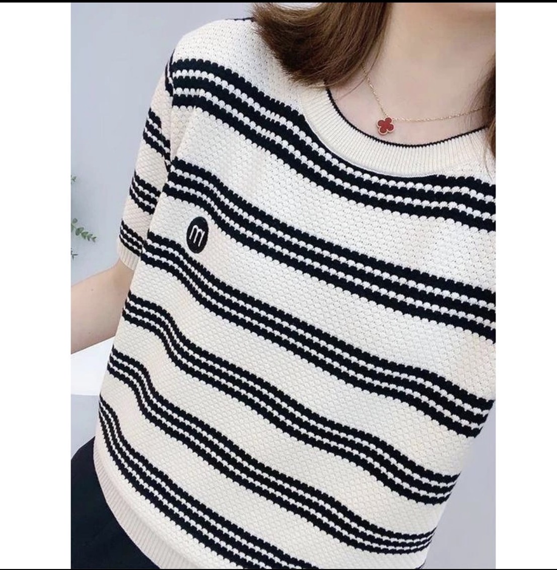 - Đặc điểm : Áo kiểu nữ tay ngắn thiết kế theo phong cách Hàn Quốc, chất liệu len mềm mịn, thấm mồ hôi, form vừa xinh, phù hợp với nhiều lứa tuổi khác nhau đều mặc lịch sự, trẻ trung.