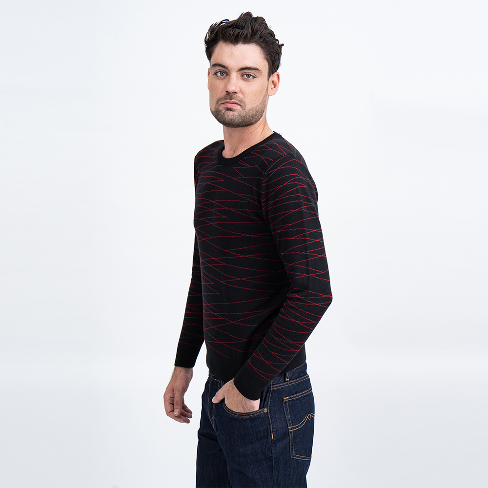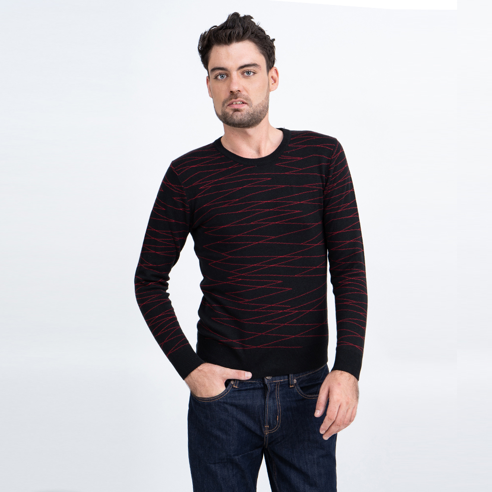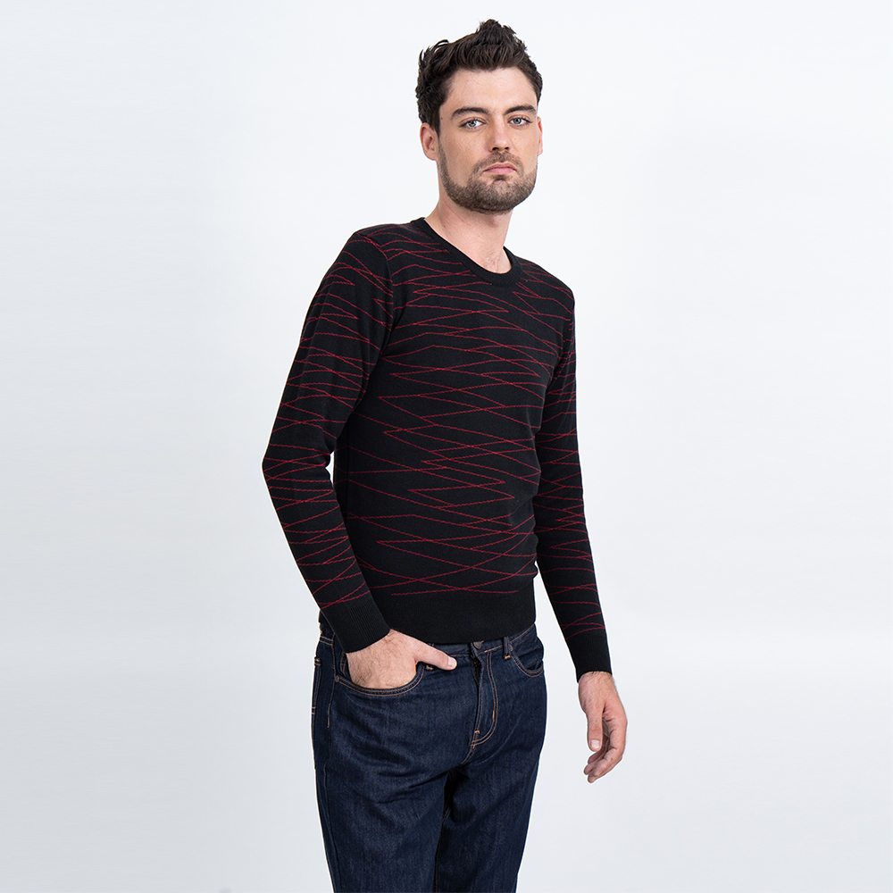 Áo len nam dài tay cổ tim màu đen in họa tiết NOVELTY 180565I với thiết kế họa tiết tinh tế, sang trọng và cá tính chắc chắn mang đến sự tự tin và thu