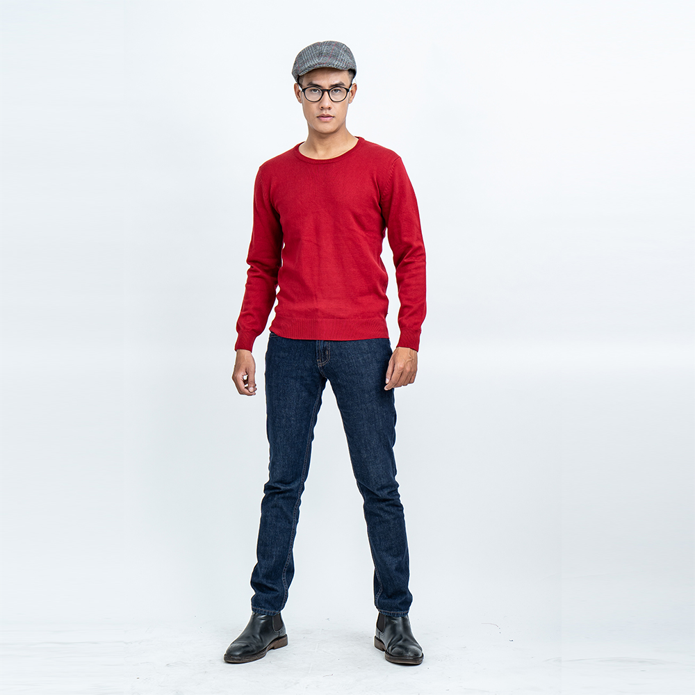 ✨Áo len nam dài tay cổ tròn màu đỏ đô NOVELTY 180577T