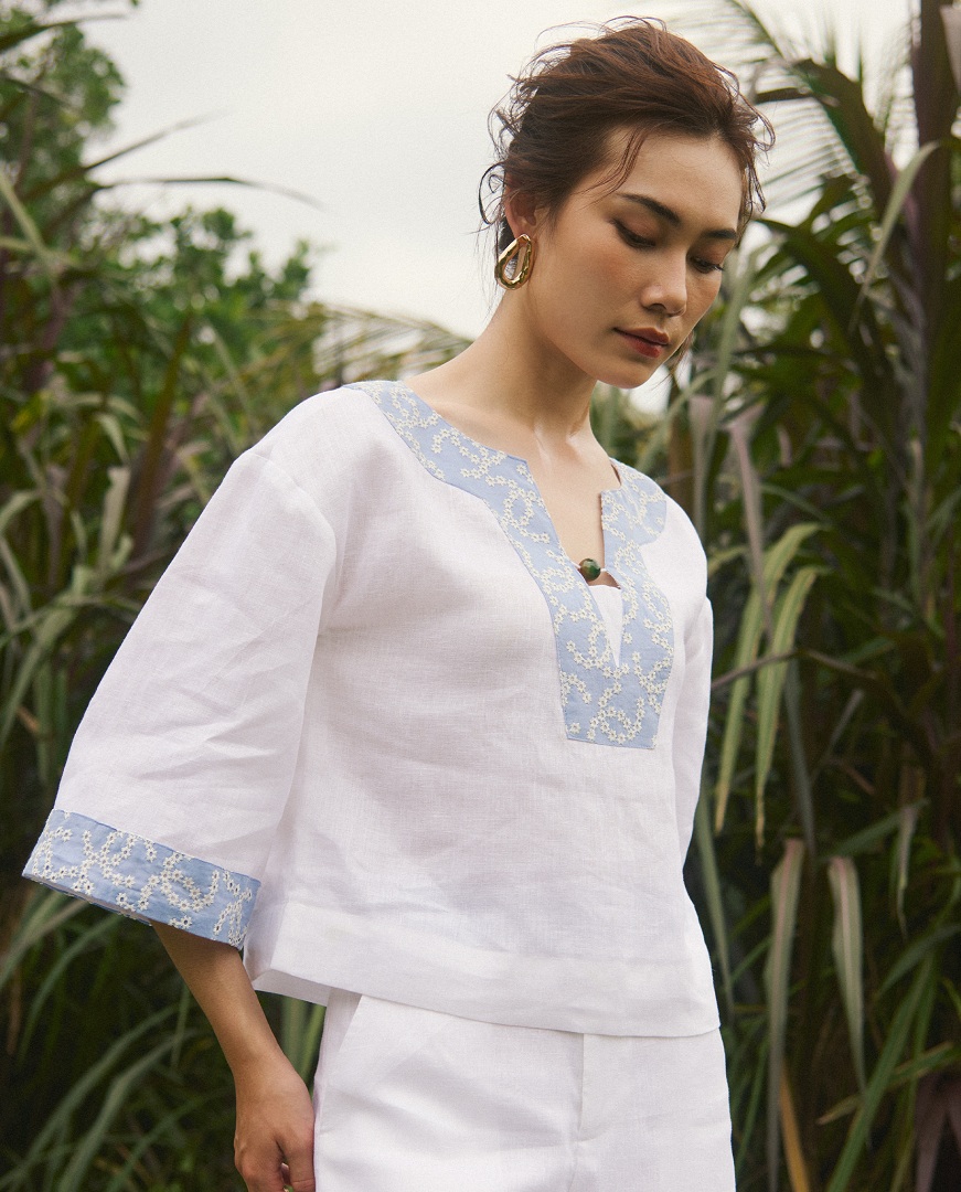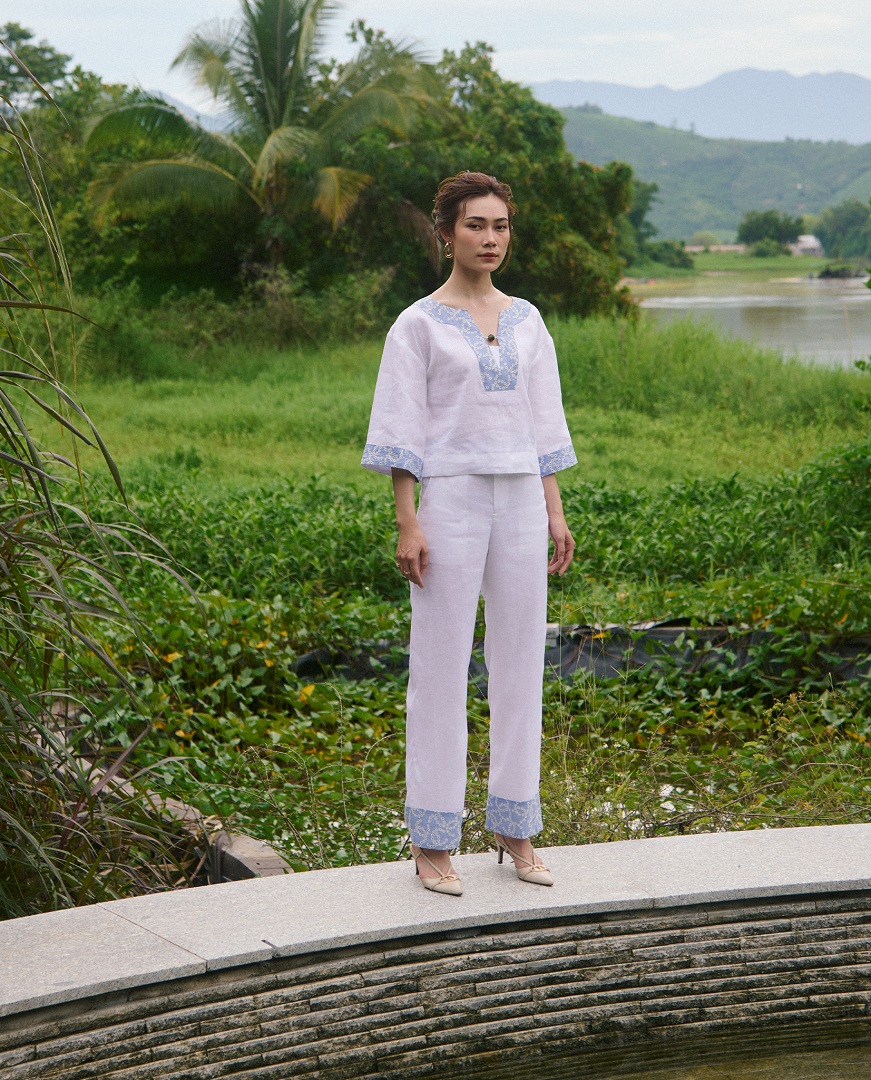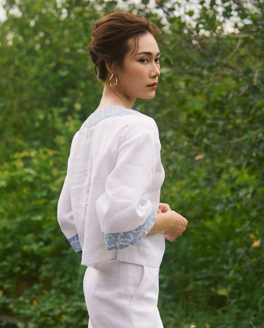 Tay loe, dài qua khuỷ, bảng tay phối linen thêu
