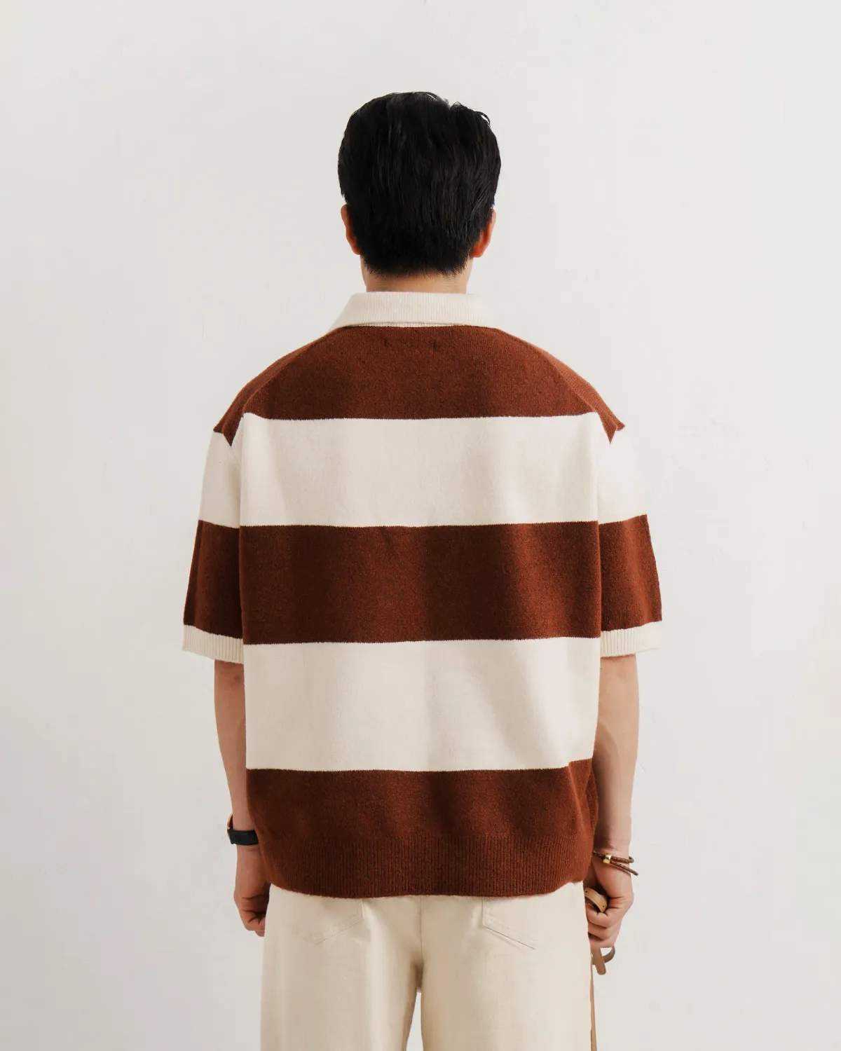 Áo thun Polo sọc ngang gân nổi trên nền vải melange, cổ bo jacguard mắt nhỏ - Kiểu dệt sọc mới tạo hiệu ứng gân nổi đặc sắc - 6 gam màu trung tính -
