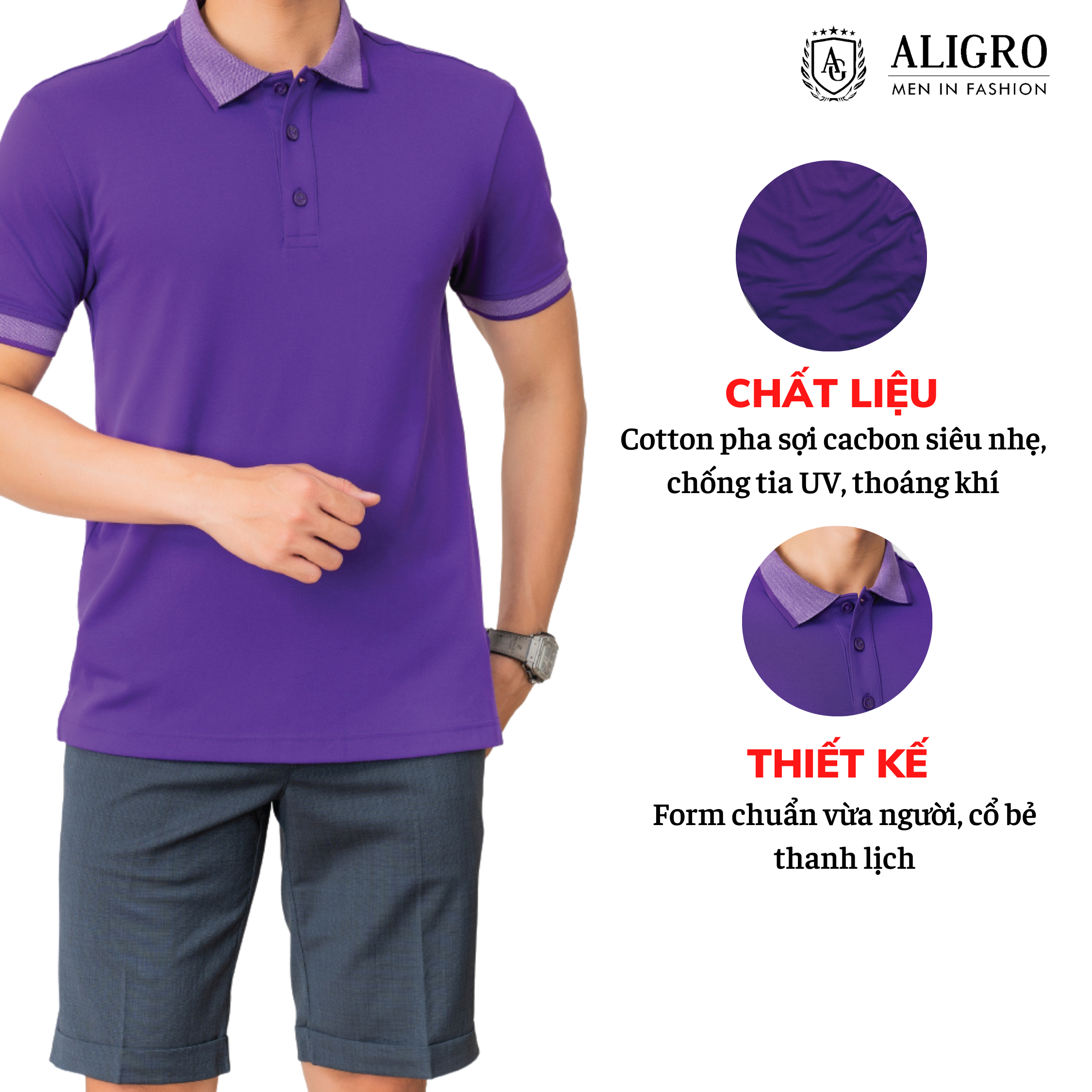 Mua tại Tiktok️ GIỚI THIỆU THƯƠNG HIỆU Là thương hiệu thời trang thiết kế nam với những sản phẩm chất lượng cao, giá thành phù hợp, Aligro nâng tầm phong cách quý ông qua những thiết kế hiện đại lịch lãm, phong cách châu Âu trên nền tảng cảm hứng từ chính đất nước con người Việt. ️ THÔNG TIN SẢN PHẨM Cổ dệt - tay bo dệt jacka tinh tế tạo điểm nhấn cho chiếc áo. Chất vải COTTON pha sợi CACBON, siêu nhẹ, chống tia UV, thấm hút mồ hôi tốt, kháng khuẩn, không xù, không bám dính, bao giặt máy. Màu: Xanh,Trắng, Xám, Tím, Size S, M, L, XL tương đương 58kg-85kg Sản xuất trên dây truyền hiện đại nhất Việt Nam, uy tín. Bao đổi hàng nếu có lỗi. ** Thiết kế: