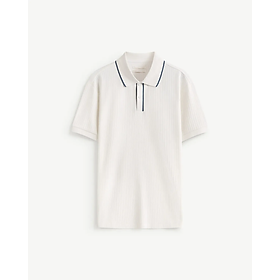 Áo thun Polo sọc ngang gân nổi trên nền vải melange, cổ bo jacguard mắt nhỏ - Kiểu dệt sọc mới tạo hiệu ứng gân nổi đặc sắc - 6 gam màu trung tính -