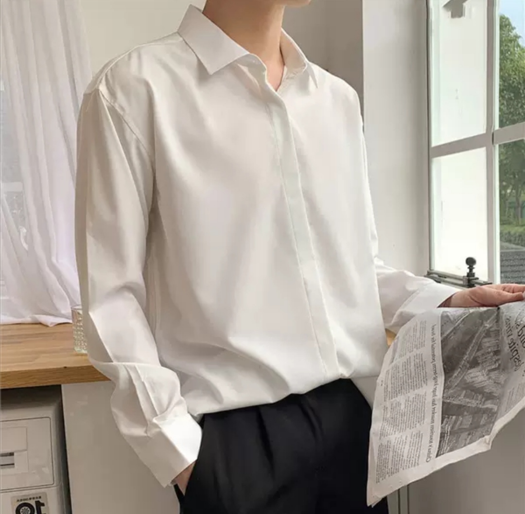ÁO SƠ MI FORM RỘNG GIẤU NÚT TAY DÀI UNISEX DÀNH CHO NAM VÀ NỮ - ÁO SƠ MI RỘNG dành cho nam và nữ, mặc rộng thoải mát - ÁO SƠ MI TRẮNG- ĐEN-