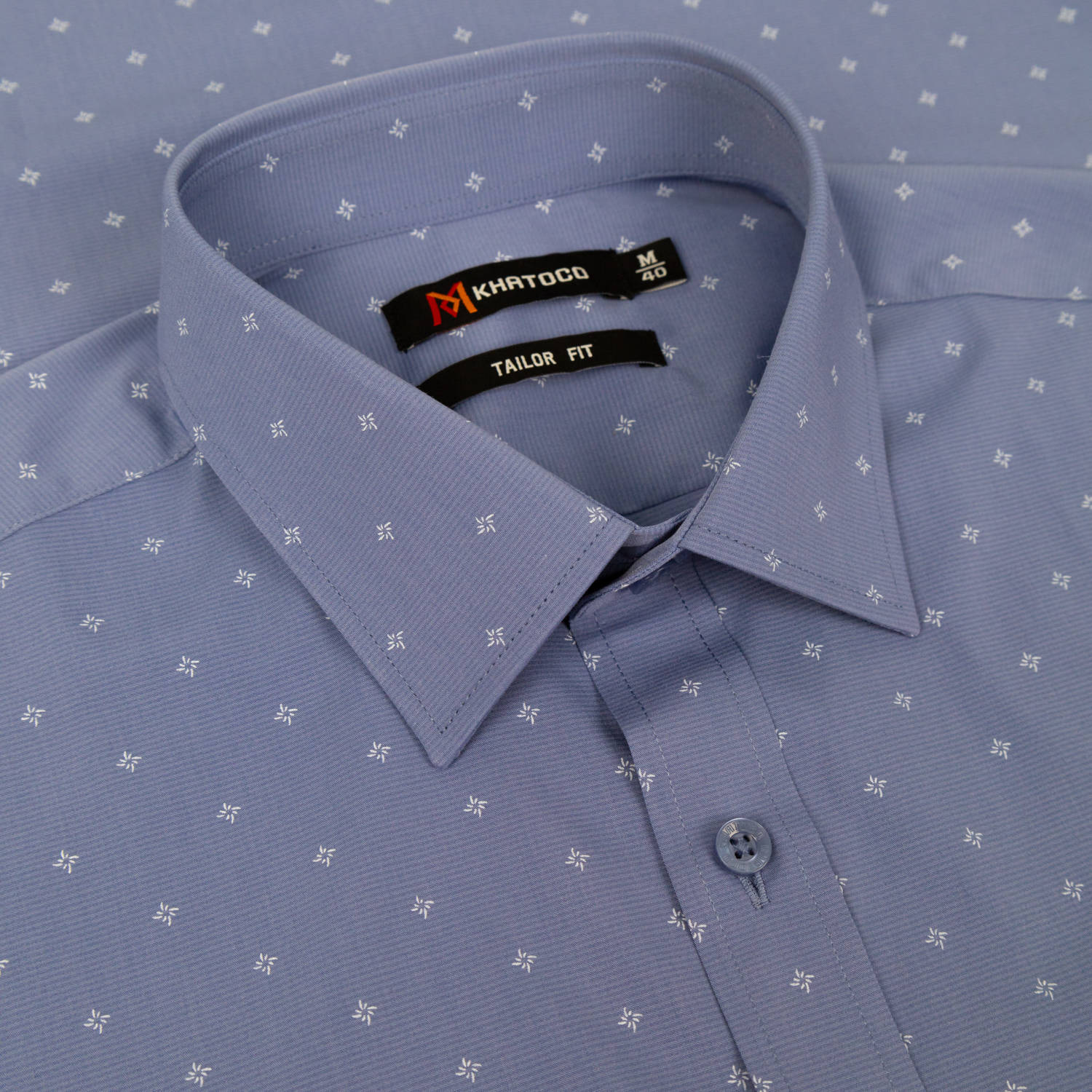 (V) MÔ TẢ: Form Taylor, tai dài Form áo tiêu chuẩn với form áo rộng vừa phải, không ôm sát cơ thể, bó nhẹ ở vùng eo và tay áo. Độ rộng vùng ngực và nách cũng sẽ fit hơn với cơ thể. Không quá rộng như form áo cổ điển. Màu vải nhã nhặn và trung tính dễ dàng phối trang phục tạo sự lịch lãm, nam tính Nút ton-sur-ton khắc logo đẹp mắt phối trọn vẹn màu áo. Logo thêu sắc nét trên túi áo. Chất liệu:50%POLYESTER- 24%COTTON-2%SPANDEX- 24%VISCOSE(BAMBOO) |Mềm mịn|Thấm hút |Kháng khuẩn|Độ thoáng khí cao|Chống tia UV|Chống nhăn|Chống co rút |Nhanh khô|Dễ vệ sinh làm sạch|Đứng phom áo Màu sắc : Màu Xanh họa tiết