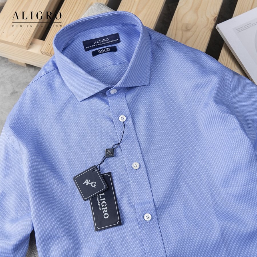 ✨ÁO SƠ MI NAM DÀI TAY TRƠN MÀU XANH DƯƠNG ALIGRO DÁNG SLIMFIT MÃ ALGS198