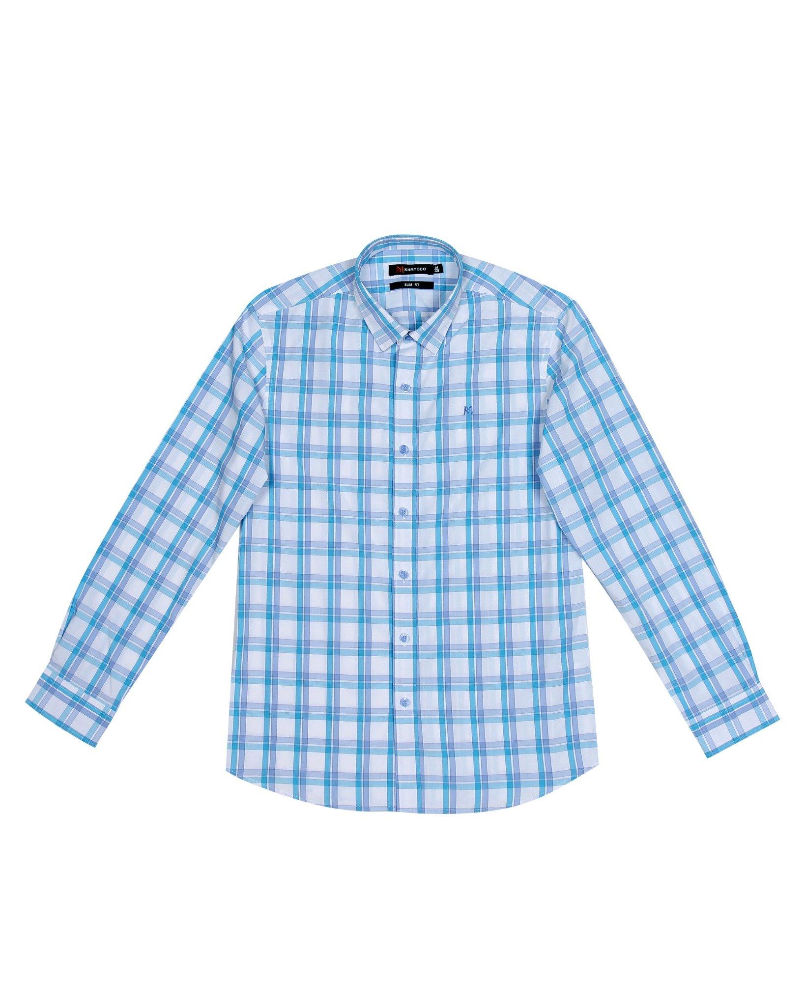 Áo sơ mi nam trung niên, Áo sơ mi nam công sở Anton, Áo sơ mi nam dài tay họa tiết caro xanh Vải cotton thoáng mát, thấm hút tốt, mềm mịn không xù Qúy