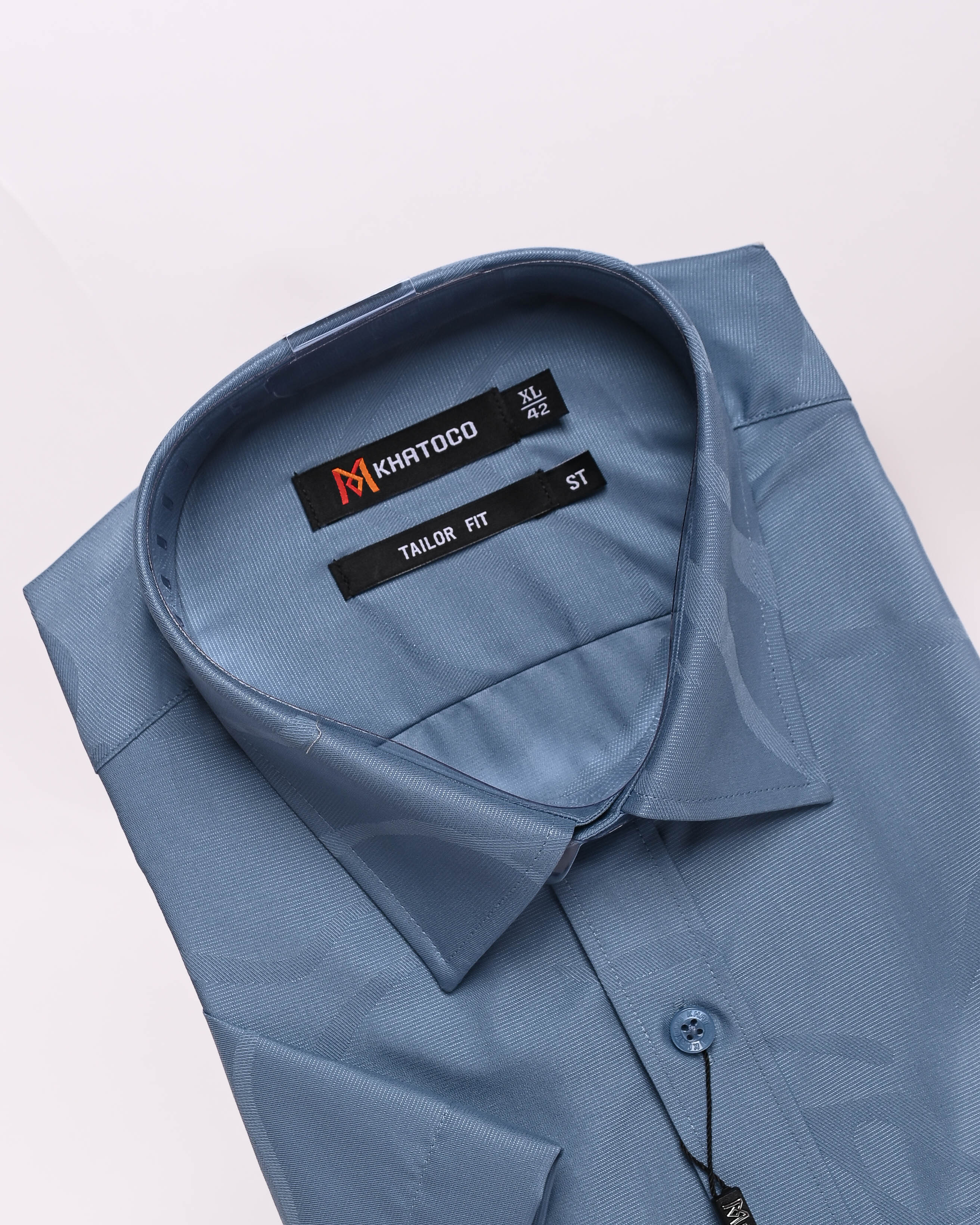 Áo sơ mi nam tay ngắn lai ngang – Khatoco - Mã hàng: A1MN538T2 - Chất liệu: 75% Polyester + 22% Viscose (Bamboo) + 3% Spandex → Vải mềm mại, thoáng mát, co giãn nhẹ,