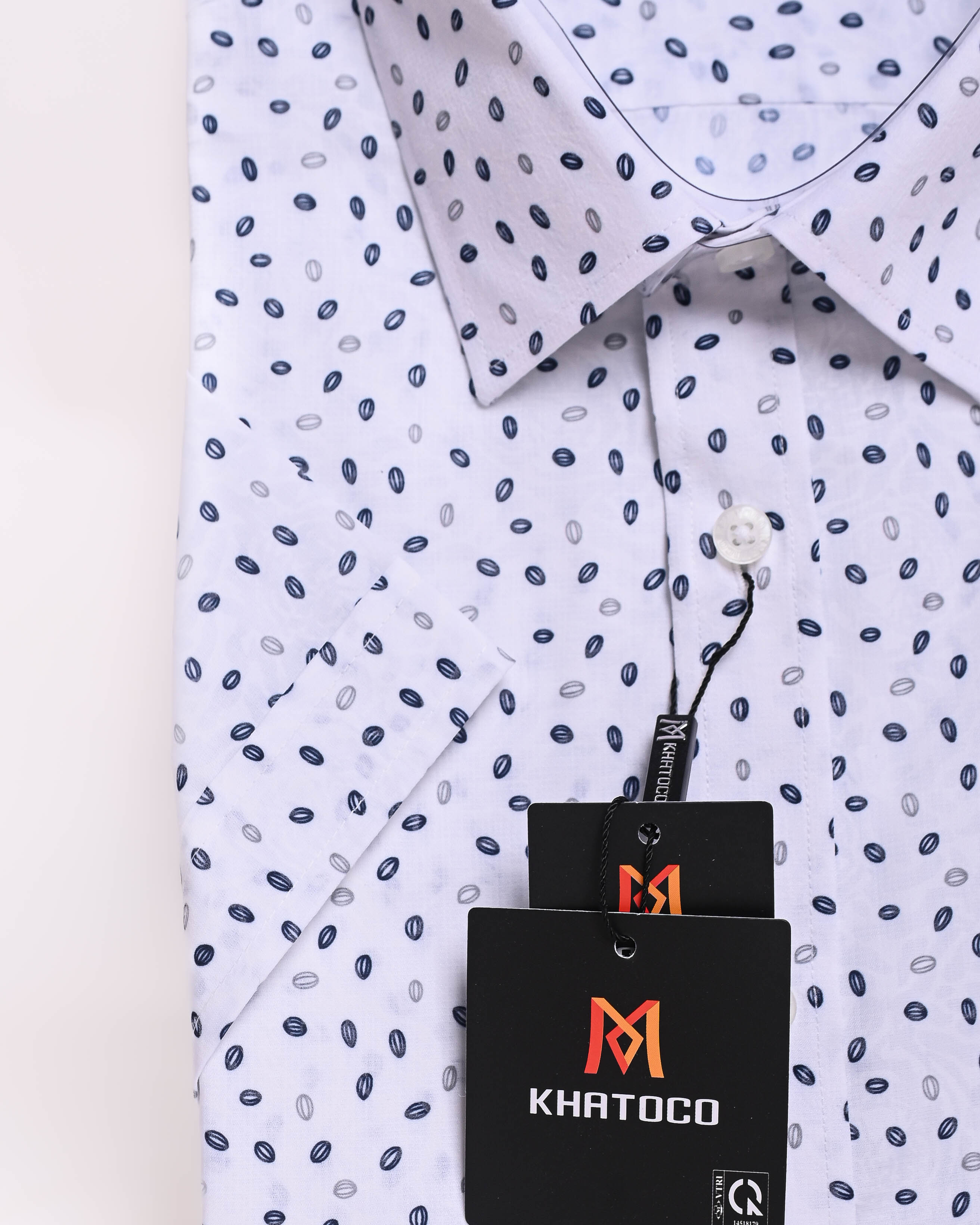 (V) Mô tả sản phẩm: Áo Sơ Mi Nam Khatoco Tay Ngắn – Họa Tiết Trừu Tượng, Form Tailor Fit Lịch lãm, thời thượng và đầy cá tính – mẫu áo sơ mi tay ngắn Khatoco là lựa chọn lý tưởng cho quý ông hiện đại. Thiết kế họa tiết trừu tượng ấn tượng trên nền vải trắng ngà, tạo điểm nhấn nổi bật nhưng vẫn giữ sự tinh tế. - Chất liệu: Polyester - Spandex - Viscose: mềm mại, thoáng mát, co giãn nhẹ, giữ form tốt và dễ ủi. - Kiểu dáng: Tailor Fit – ôm nhẹ cơ thể, giúp tôn dáng mà vẫn thoải mái vận động. - Thiết kế: - Cổ áo đứng chuẩn dáng, thanh lịch - Họa tiết trừu tượng độc đáo, hiện đại - Logo thêu tinh tế trên túi ngực - Nút áo tông xuyệt tông, được may chắc chắn - Màu sắc: Trắng ngà phối họa tiết nâu nhạt - Size: M (40), L (41), XL (42), 2XL (43)
