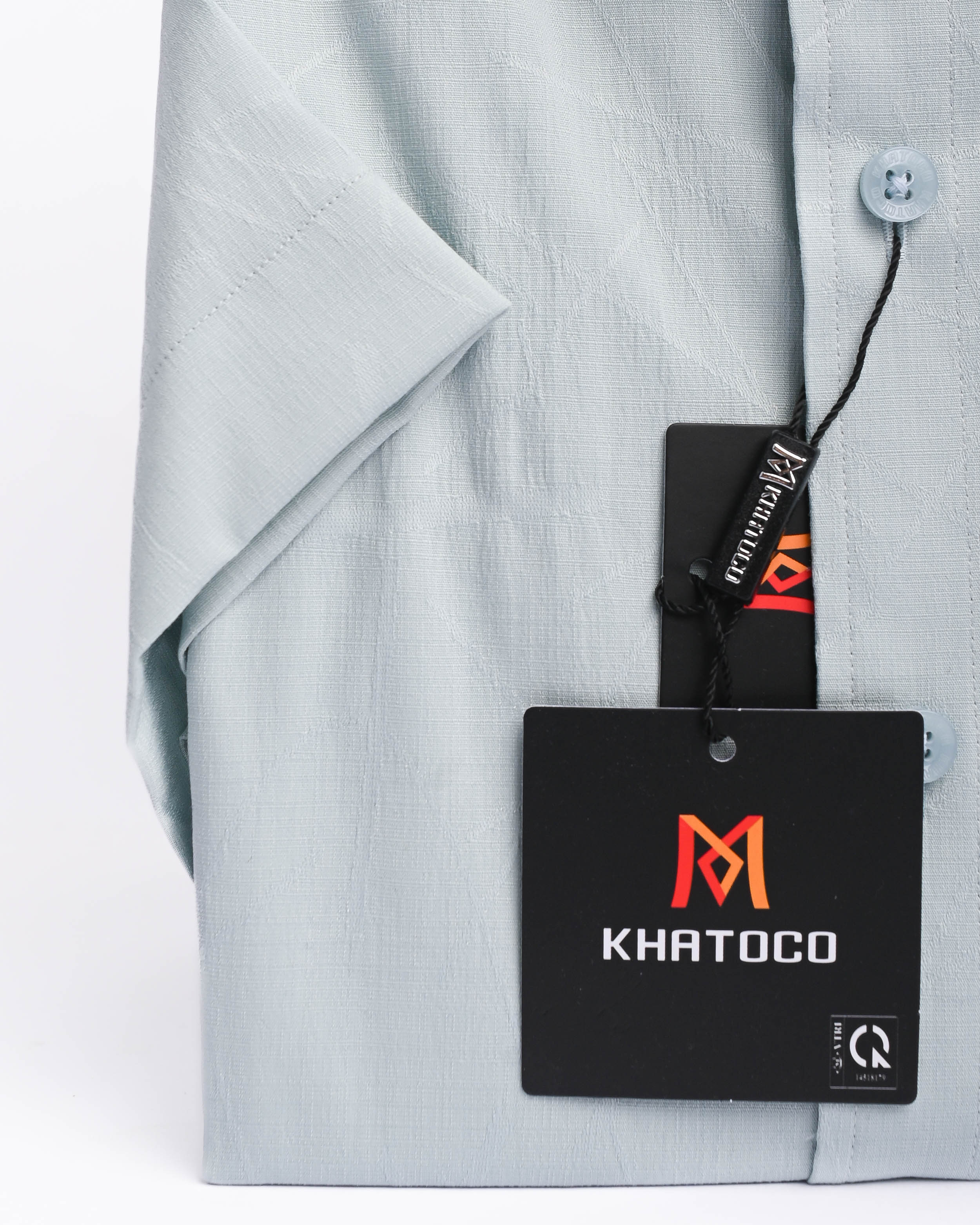 Áo sơ mi nam tay ngắn lai ngang – Khatoco - Mã hàng: A1MN538T2 - Chất liệu: 75% Polyester + 22% Viscose (Bamboo) + 3% Spandex → Vải mềm mại, thoáng mát, co giãn nhẹ,