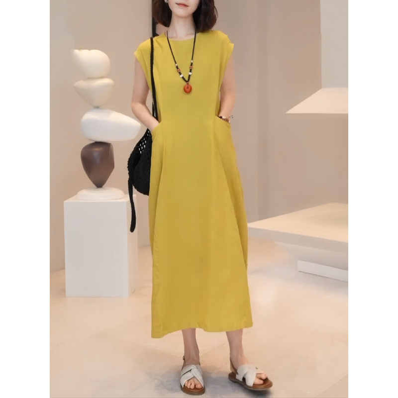 ღ THÔNG TIN SẢN PHẨM: Tên sản phẩm: Đầm vàng chanh cổ yếm Chất liệu: Chất gân ý· Chi tiết sản phẩm: không lót, không túi Thông số size: S, M,