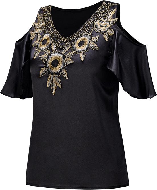 Áo trễ vai nữ thiêu hoa dành cho người mập Tên vải: lụa nhân tạo + ren Thành phần vải: polyester 97% spandex 3% Giới thiệu phong cách: kết ren hoa Áo cập nhật xu