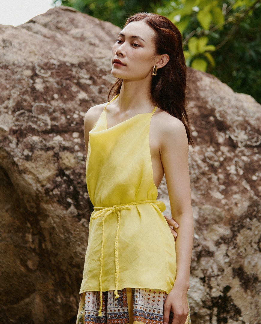 Kiểu dáng hở lưng gợi lên vẻ đẹp quyến rũ, bí ẩn. Yếm mang phong cách tự do, phóng khoáng, như nàng kim tước vàng anh gợi cảm.